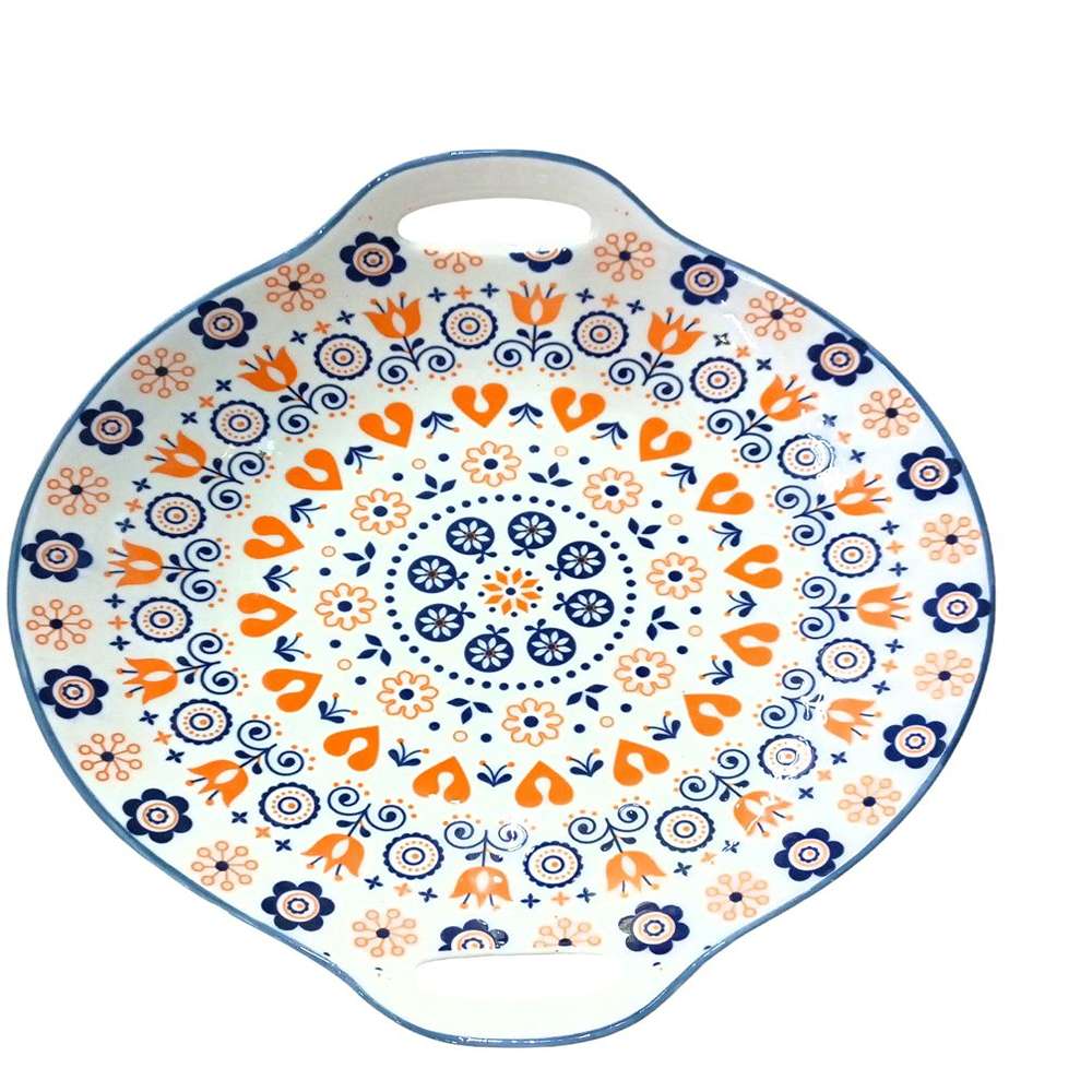 عنوان المنتج: طبق بورسلين زخرفي بتصميم زهري – قطعة فنية لإضفاء لمسة من الأناقة على مائدتك