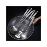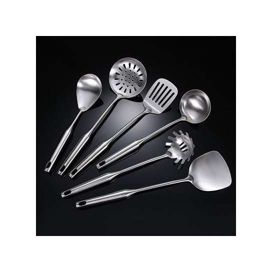 - يحتوي على 6 أدوات متنوعة تناسب جميع احتياجات الطبخ: مغرفة، ملعقة تقديم، ملعقة مثقبة، ملعقة مفرودة، مغرفة سباغيتي، ومصفاة صغيرة.