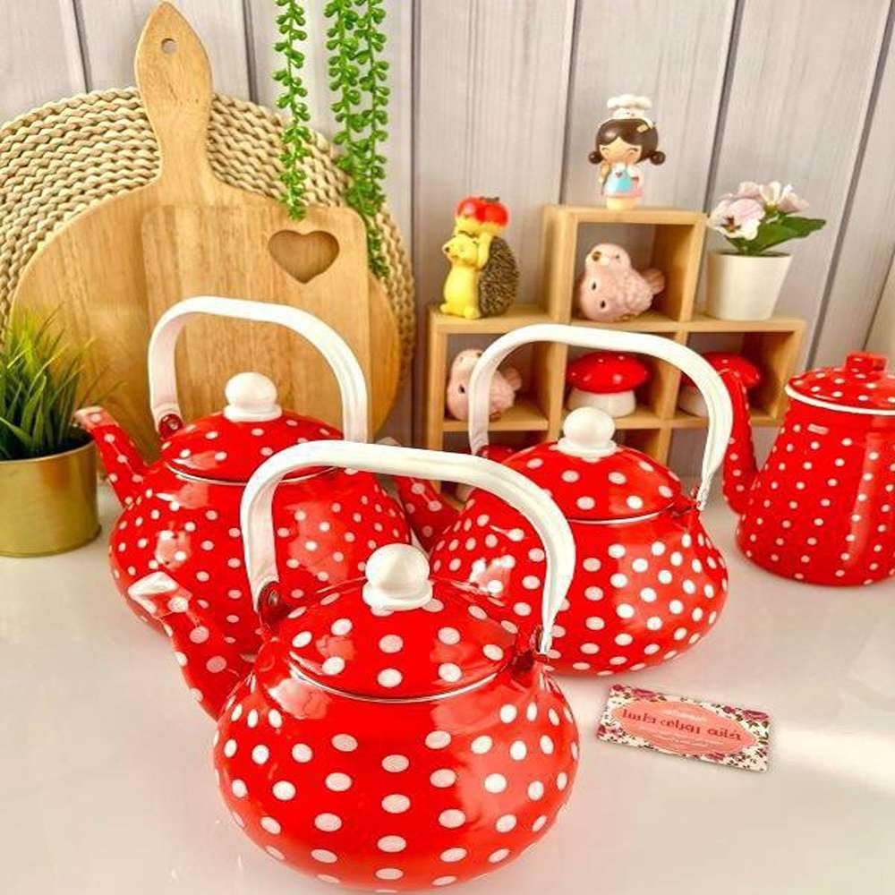 الوصف: أضف لمسة من الأناقة العتيقة لمطبخك مع غلاية الشاي الحمراء ذات التصميم المنقط الجذاب. تأتي الغلاية بلون أحمر زاهٍ ومزين بنقاط بيضاء تضفي عليها طابعًا كلاسيكيًا وأنيقًا. مصنوعة من مواد عالية الجودة لضمان تسخين سريع وتوزيع متساوٍ للحرارة، مما يجعلها مثالية لتحضير الشاي والمشروبات الساخنة بسرعة وسهولة.