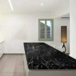 • Design: Black marble with fine white veins that add depth and movement to the design.