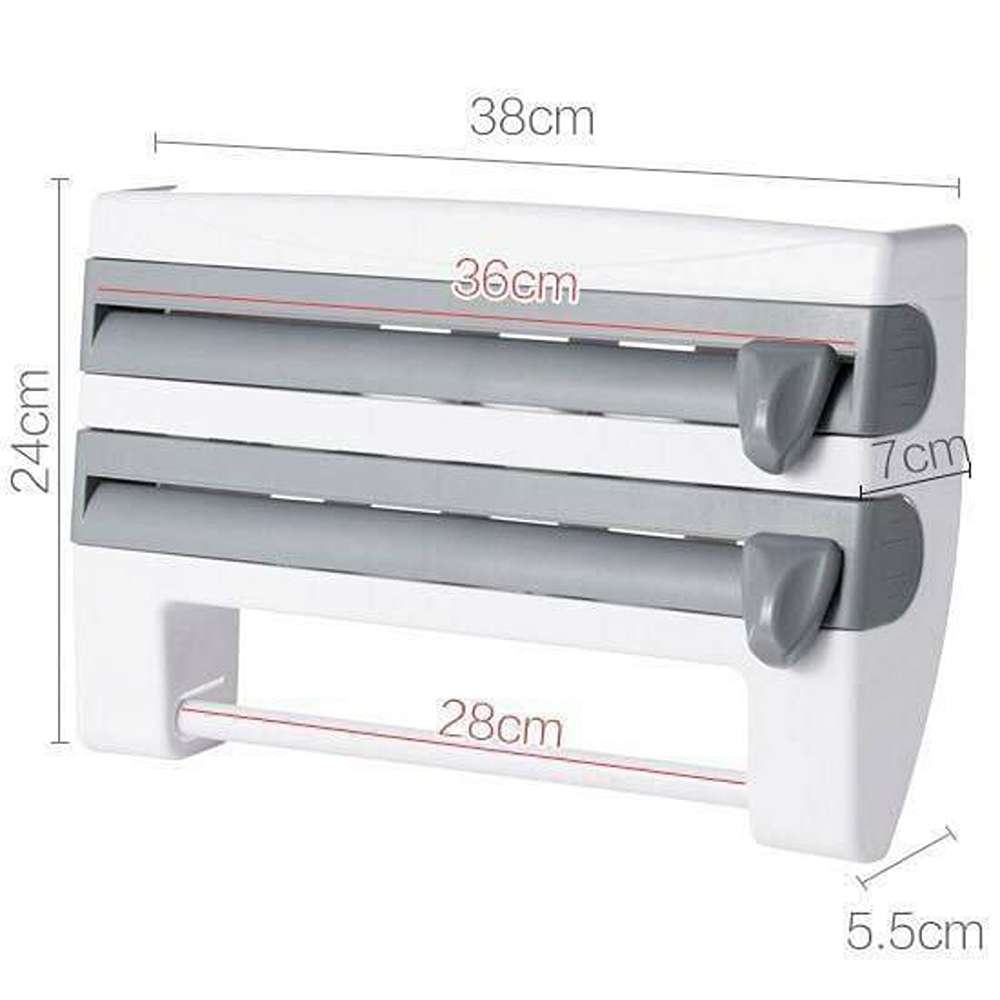 • Dual holder for dispensing kitchen rolls such as foil and plastic wrap, with precise cutting blades for each roll.